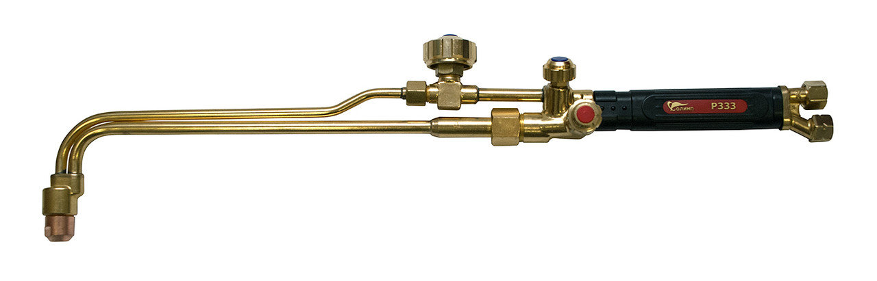 Резак пропановый инжекторный для ручной газокислородной разделительной резки низкоуглеродистых сталей, толщина реза до 300мм, диаметр присоединяемых рукавов 9/9 мм, в комплекте внутренние мундштуки №2 (15-30мм), №3 (30-50мм), №4 (50-100), L=580мм, вес 1,3кг.