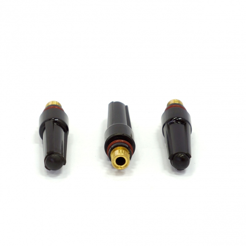 Заглушка используется для того, чтобы надёжно зафиксировать цангу с электродом в TIG горелке.  Выделяют три основных типоразмера заглушек: длинный, средний и короткий. Длину хвостовика сварщик выбирает в зависимости от конкретной задачи, которая стоит перед ним. Если сварку приходится вести в труднодоступных местах есть смысл взять колпачок покороче.