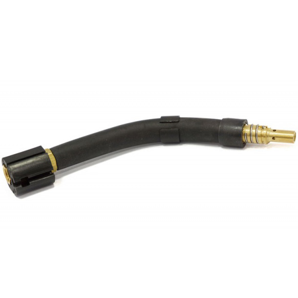 Гусак – заменяемая часть горелки для полуавтоматической сварки. Замена гусака может потребоваться в случае выхода из строя данного элемента либо необходимости выполнения специфичных сварочных задач. На гусак устанавливаются сопло и наконечник. В рукоятке горелки гусак подключается к силовому кабелю и шлангу подачи газа. Если горелка оснащена жидкостным охлаждением, на гусаке появляются фитинги для подключения воды.