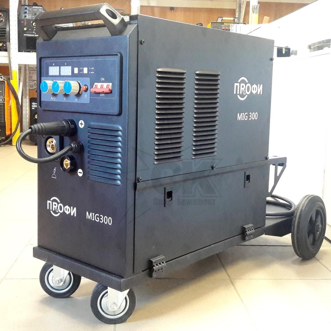 380 В, 40-300А, ПВ 60% при I max, 10 кВт, 27кг (в комплекте горелка MIG, клемма заземления (с кабелем)