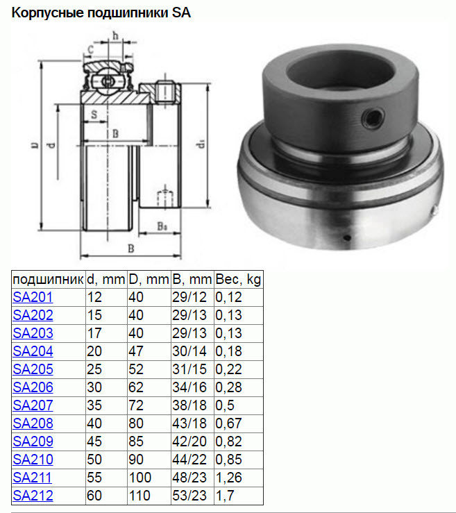 Радиальные шариковый подшипник SA212 (подшипник качения шариковый радиальный однорядный с двумя уплотнениями и широким внутренним кольцом и съёмной втулкой)
