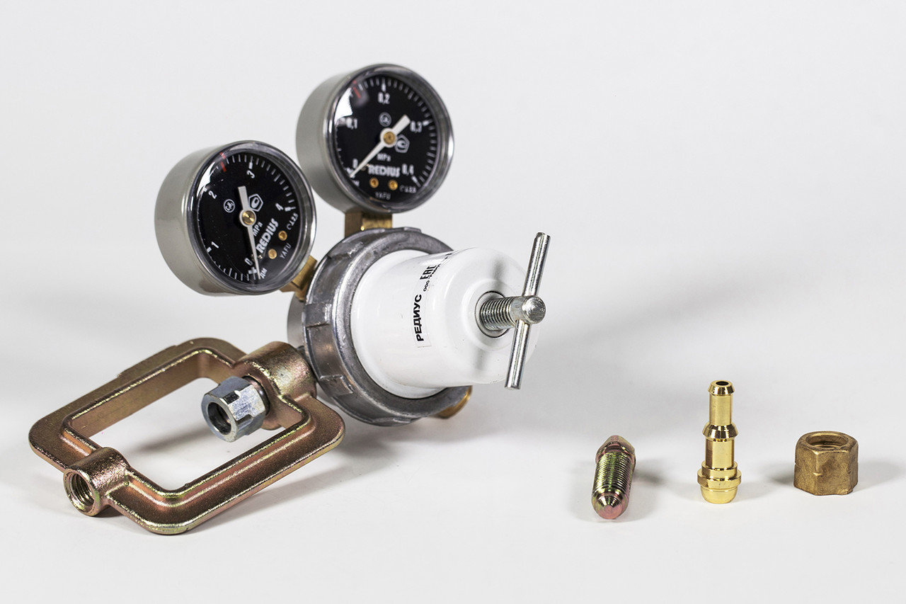 Давление в баллоне контролируется манометром высокого (входного) давления, а в рабочей камере — манометром низкого (выходного) давления. Отбор газа осуществляется через ниппель, который присоединяется к редуктору гайкой с резьбой М16?1,5LH. К ниппелю присоединяется рукав диаметром 9 или 6 мм, идущий к горелке или резаку.